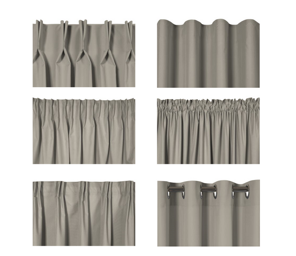 Způsob řasení určuje kolik látky je zapotřebí. Styl definuje řasící stuha a v DUŠEK DÉCOR Vám nejen poradíme, ale ukážeme několik vzorků.