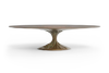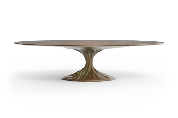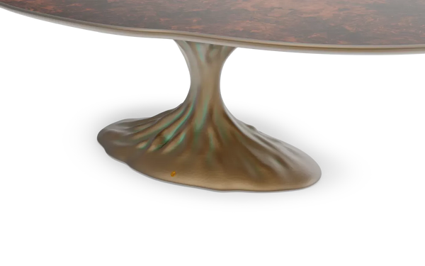 Horní deska z kořene ořechu, podnož v barvě mosazi.
