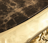 Inspirací pro tento jedinečný kus se stal prehistorický monument Stonehenge – jeho asymetrické uspořádání a působivá kombinace materiálů, jako je mosaz a mramor, dodávají nábytku monumentální charakter. Tento designový prvek pozvedne každý interiér na zcela novou úroveň. Kovové tóny vytvářejí elegantní kontrast, zároveň však dokonale ladí a vzdávají hold období neolitu a doby bronzové.