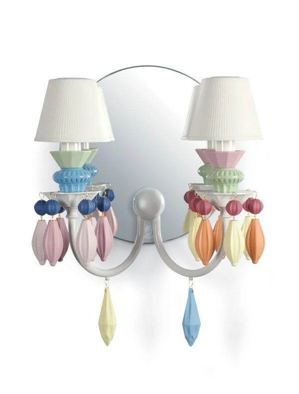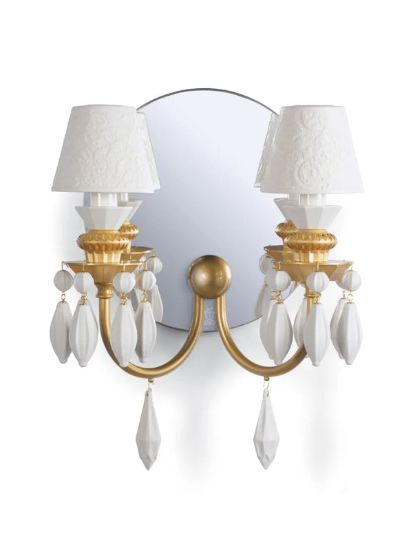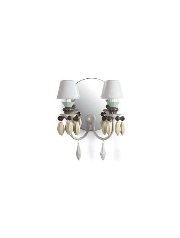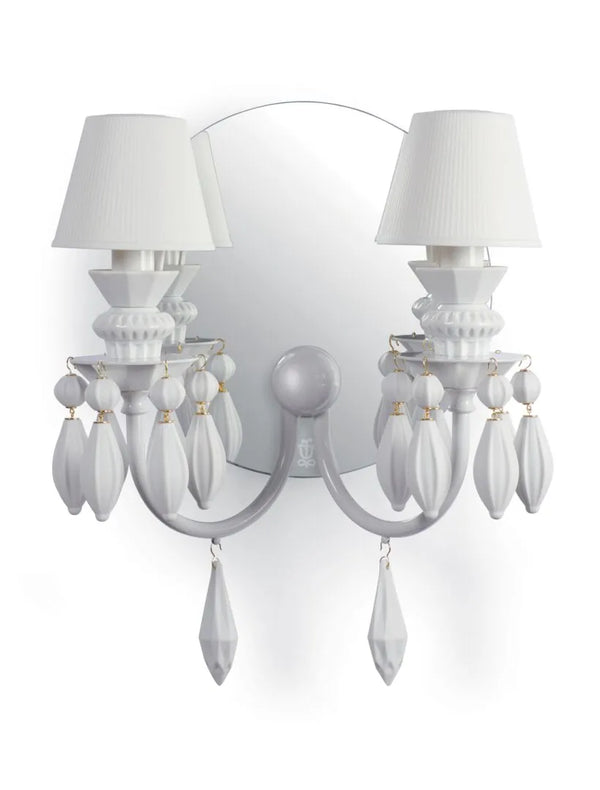 Nástěnná lampa se dvěma světly a ručně vyráběným porcelánovým designem.