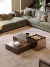 Konferenční stolek Fortune, prominentní kousek v obývacím prostoru, dává pocítit svou přítomnost díky své robustní a strohé konstrukci.