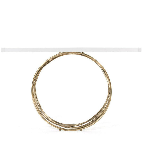 Konzole halo je inspirována věčnou silou oceánu. Jeho ručně tepaná mosazná struktura zapouzdřuje pohyb vln, zatímco čirý akrylový vršek symbolizuje čistotu vody.