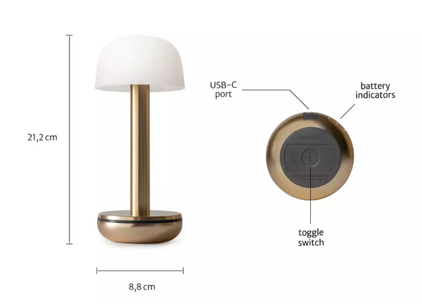 Tato štíhlá stolní lampa vrhá jemné světlo, ideální pro romantickou večeři. Obsahuje robustní baterii, která po nabití vzdrží až 96 hodin.