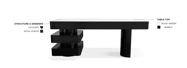 Lakovaný psací stůl SHINTO II má a bílou desku stolu z dýhy jasanového dřeva. Pací stůl se zásuvkami je ideální pro moderní domácí kancelář.