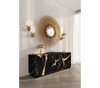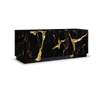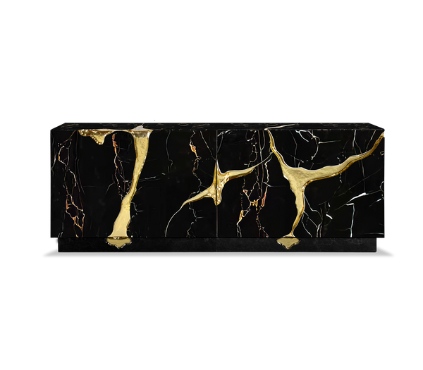 Lapiaz sideboard takes exceptional craftsmanship and design to a new realm. Its organic features are achieved through the manual fitting of polished brass, and a glossy black lacquer finish that bursts from the inside to the distinct exterior façades. Different-shaped doors and drawer are embellished by hammered gold details, conveying both sophistication and elegance to bring a new contemporary verve into refined interiors. Finding beauty in the most unexpected places, this luxe sideboard born from authentic karst formations created by surface dissolution, freezing, or thawing of dolomite rocks.