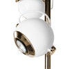 Scofield is an unusual floor lamp with five chrome lights all supported by a white brass base. Each light and bracket rotate separately allowing different light focuses. The mid-century modern floor lamp has round lamp shades in Aluminium, that can support different activities and create an industrial design in the room.