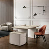 Wind is a modern, elegant desk. Ideal for the office and home. Wide, robust legs are offset by an aerodynamic design. Combine with drawer cabinets that offer enough space to store notebooks, stationery, chargers and more.