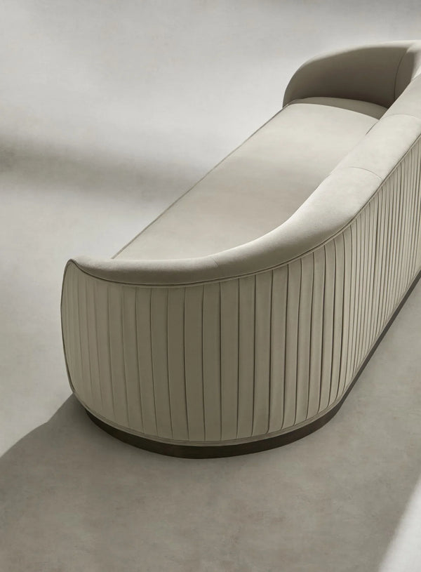 The Abano sofa is a timeless and versatile piece with an elegant fan shaped silhouette. The seat back offers comfort as well as a pleasing aspect thanks to its exceptional upholstery.