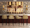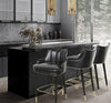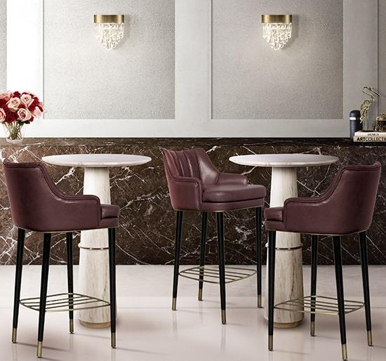 Upholstered barstool with glossy black lacquered legs celebrates majesty and luxury.