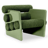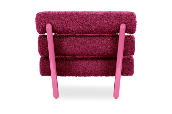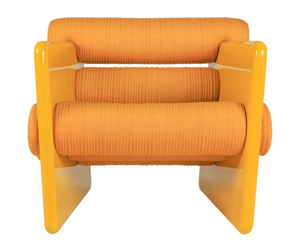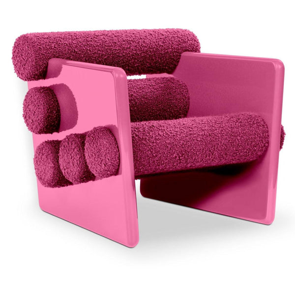 The versatile Charles armchair, inspired by the 70s, perfectly balances opposing and contrasting textures.
