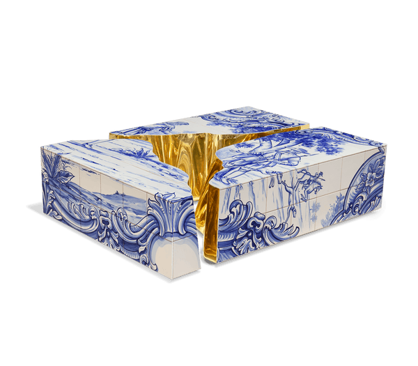 Lapiaz center table takes exceptional craftsmanship and design to a new realm. Finding beauty in the most unexpected places, this contemporary design piece is inspired by authentic karst formations. Its organic features are achieved through the manual fitting of the polished brass sheet, and a sharp exterior finished in polished stainless steel that portrays a perfect mirror. The hammered brass details and mirrored sides conveys both dynamics and elegance, a beautiful duality between power and refinement to bring a new contemporary verve into interior design. A functional artwork conceived in three modules for unexpected combinations. Born from cold and freshly cracked to showing off the world rich, golden interior.