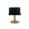 The Brourbon dining chair is upholstered in velvet with a swivel base in matte brushed brass.