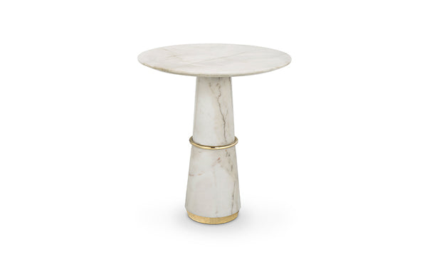 Agra is the modest setting of one of the most famous monuments in the world, the Taj Mahal, also known as the marble mausoleum. Just like it, AGRA Coffee Table is an impressive display of craftsmanship and elegance. Made of Estremoz Marble and with polished brass details, this round marble coffee table is the perfect addition to complete a dining room, and it is also elegant enough to have in a bedroom to serve as a breakfast table.