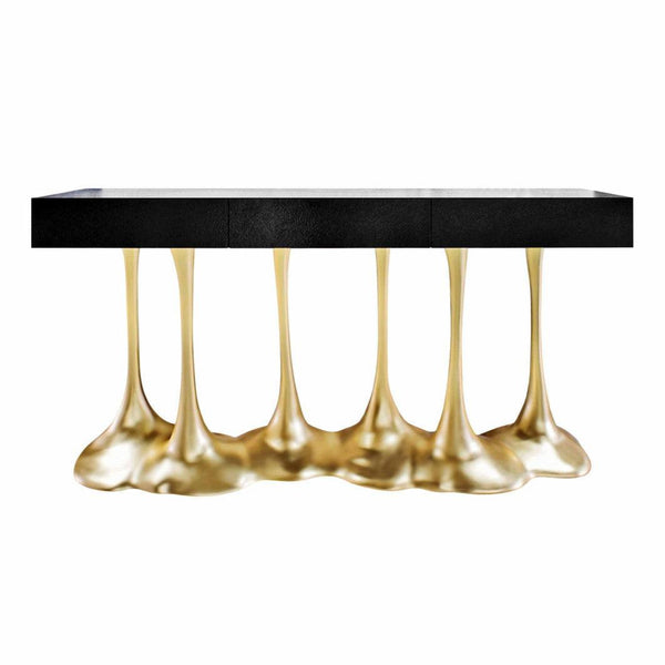 Console with base in resin reinforced with fiberglass and wooden top with 3 drawers.