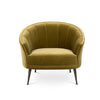 The mid-century MAYA velvet armchair with matt aged brass legs has sensual and delicate shapes.