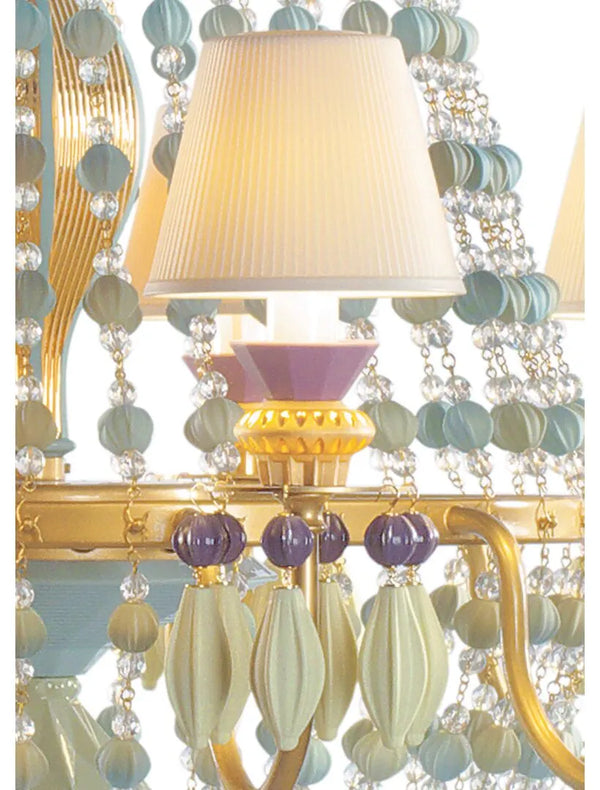 Handmade pendant ceiling light with white metal chandeliers and translucent porcelain tulips with twelve lights.