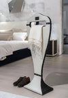 A clothes rack with service, a piece of furniture in the bedroom that seems to have fallen into oblivion, is once again a must-have item. Jacobo Ventura updated the design of this clothing butler, giving it an original shape and turning it into a decorative piece. Suit rack made with top quality finishes and lined with high quality embossed leather.