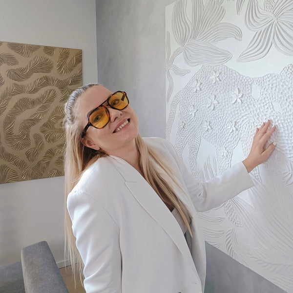 ...'Art has been with me all my life, I studied painting and graphic design at the Higher Vocational School of Graphics in Jihlava, majoring in multimedia creation and went through various styles of creation from surrealism, cubism, to expressive abstraction. In recent years, I have completely fallen into structural and monochrome painting , in which I am fascinated by the depth and plasticity of the image, the constant variability of the structure and tone of the image thanks precisely to the influence of light and shadow on the plastic structure.'