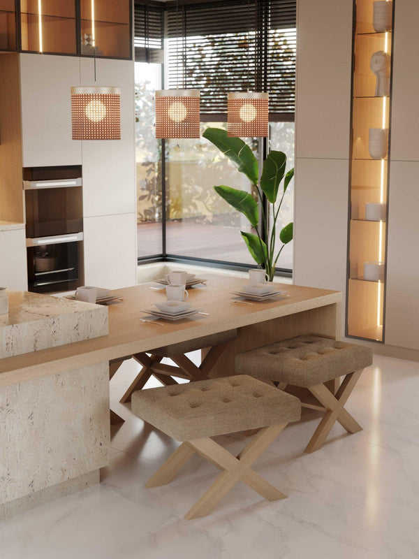 The Bridge stool is a very elegant bedroom accessory that can perform various functions, such as a footstool or a dressing table.