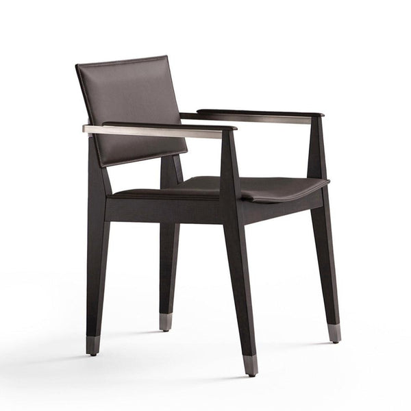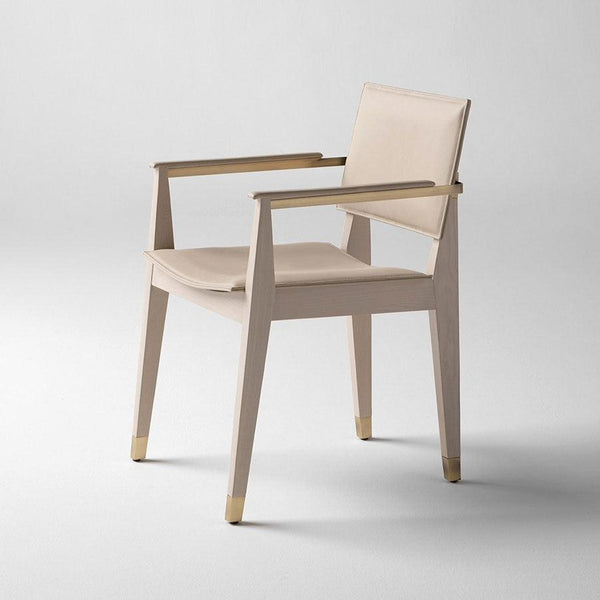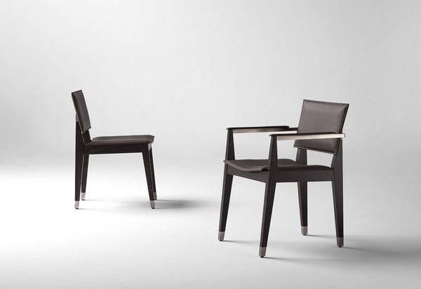 Design and sophistication for your dining room with the Tempo leather upholstered chair. A tribute to the quality of natural materials and the elegance with which they evolve with the passage of time. The structure is made of ash wood with metallic details. The seat and backrest are upholstered in natural leather.