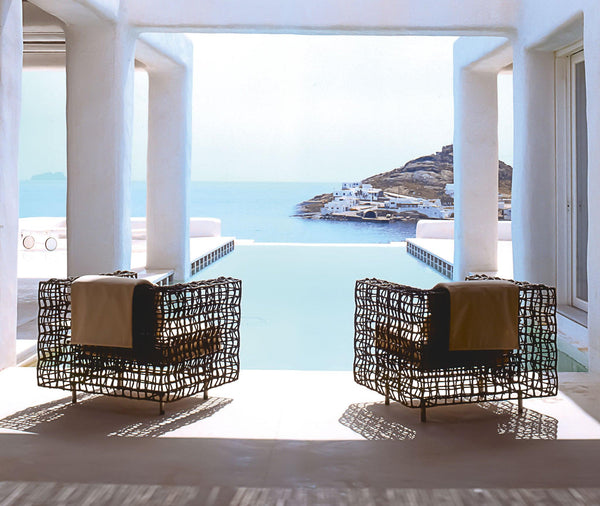 The Yin & Yang collection embodies the union of opposite elements: geometric with organic, pliable rattan with rigid steel. Solid shape with transparent volume.