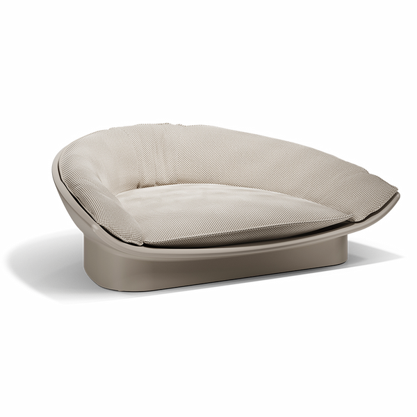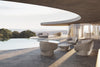 The Luna sofa, designed by Ramón Esteve, redefines rustic luxury thanks to its structure in 100% recyclable polyethylene and advanced rotational molding techniques. Its cushions with high-density polyurethane foam and synthetic fibers offer unparalleled comfort.