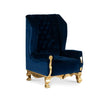 The classic armchair is characterized by extravagance in straight and pointed lines, with the use of noble materials such as velvet and the careful application of gold leaf on hand-carved wood.