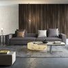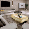 The Yaiza coffee table is made of alabaster, a natural stone that closely resembles marble due to its veined nature. Its translucent structure allows light to pass through, emitting a warm glow. Each piece is original and as it is a natural stone, it may vary in tone and veining.