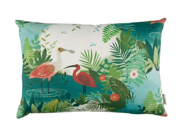 This pillow features an Amazon River print by illustrator Fran Preston-Gannon.