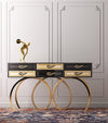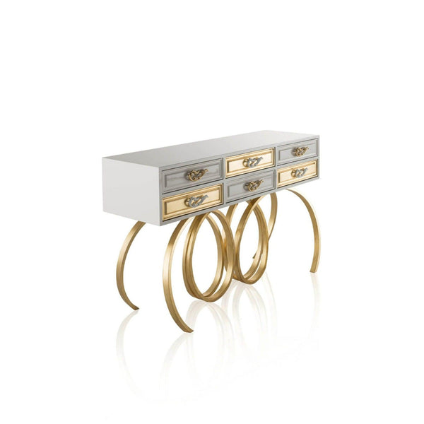 Merging a classical style and a contemporary look is possible with the Ecstasy console table. A base of stainless steel rings suits perfectly an upper top with six drawers where the uncommon handles stand out. An example where original marks an elegant presence.