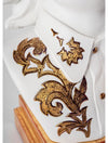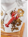 This piece of porcelain depicts Salvador Dalí. The brilliant Spanish painter is represented in all his unmistakable and exuberant personality. Made of matte white porcelain, in its decoration it has opted for a range in which gold and copper shines prevail, applied, for example, in the daffodil flowers that the painter liked so much and that crown his unmistakable beard.