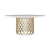 The steel structure of the Cosmos dining table made of matching arches creates the illusion of dimension in the space.